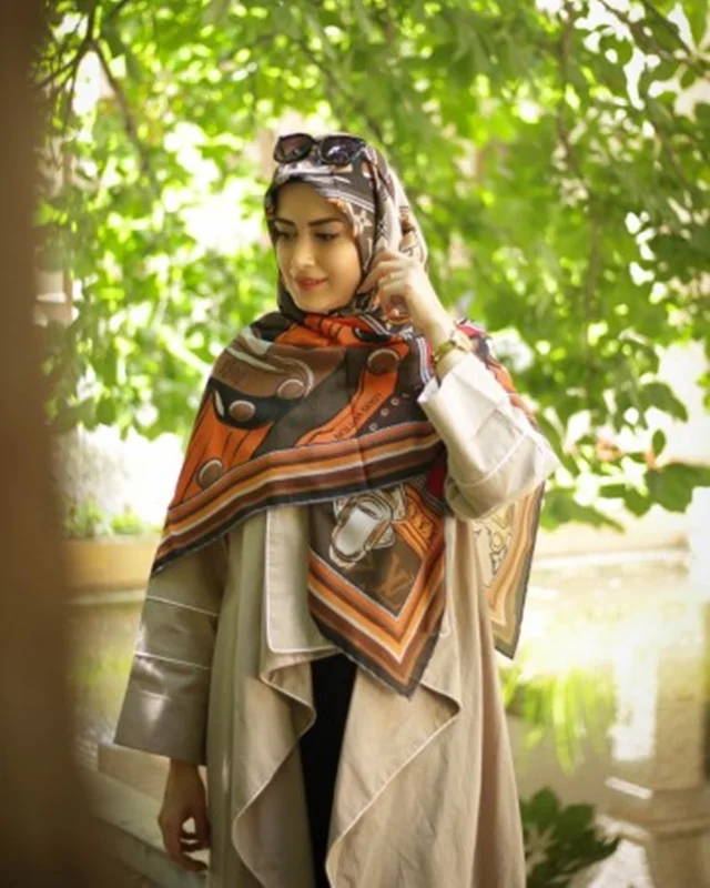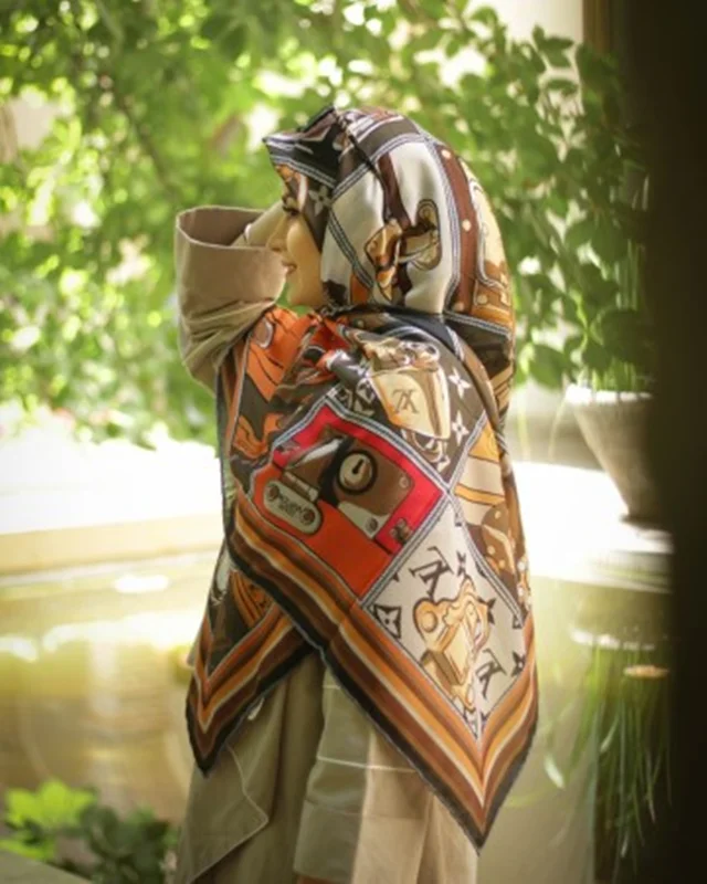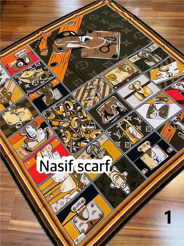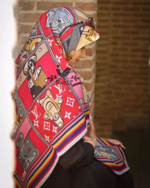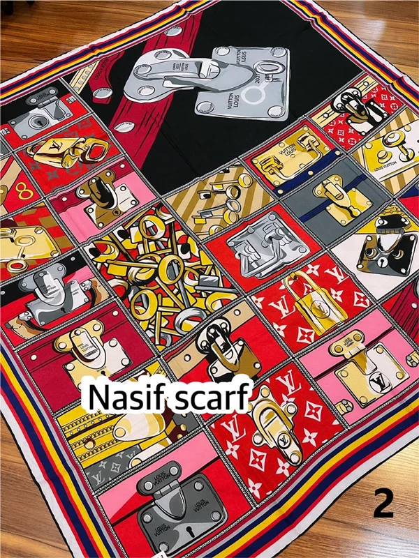 روسری مجلسی ابریشم طرح LV مناسب فصل به عرض 135 که ایستایی مناسبی دارد و لیز نمی خورد.