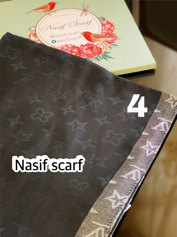روسری نخ ابریشم ژاکارد در ۵ طرح متنوع ، وارداتی با کیفیت عالی ، به عرض 140 سانتی متر که در حالت دولا موی سر از زیر آن معلوم نمی باشد. این روسری حالت کاغذی داشته بنابراین بسیار خنک و سبک می باشد ، دون دون نمی شود و ایستایی مناسبی داشته و بدون گیره و یا گره بر روی سر می ایستد.