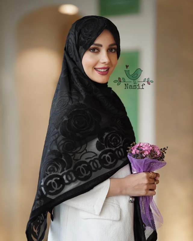 روسری مخمل طرح شنل🌸💫عرض ۱۳۵ روی شونه ایستایی دارد و کاملا مشکی ست.به صورت دولا کاملا حجاب دارد و مو مشخص نیست