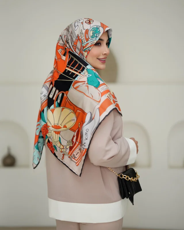 روسري نخي وطني قابل استفاده تا پايان بهار با كيفيتي عالي و ايستايي خيلي خوب حتي با چادر به عرض ١٣٠ ، دور دست دوز