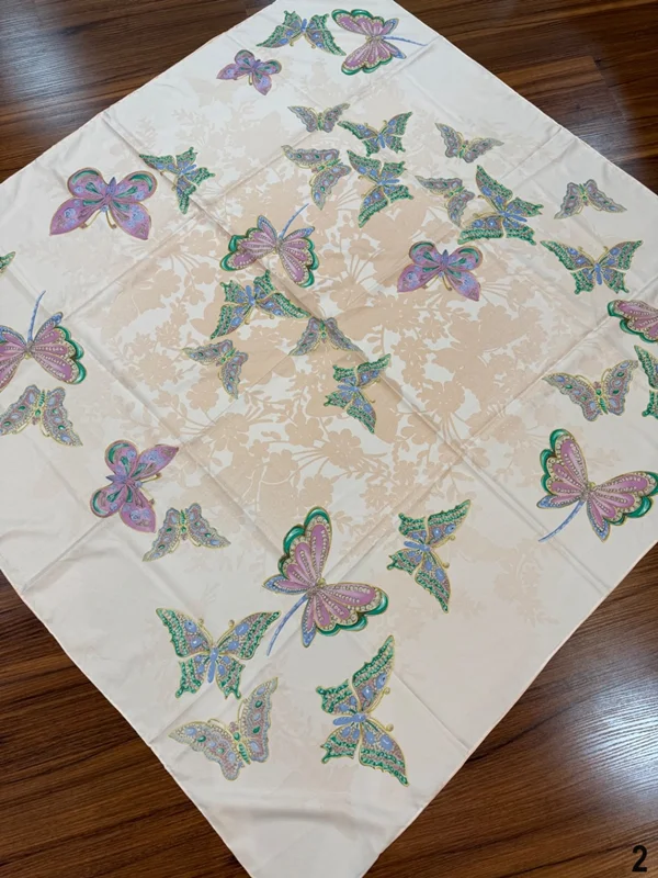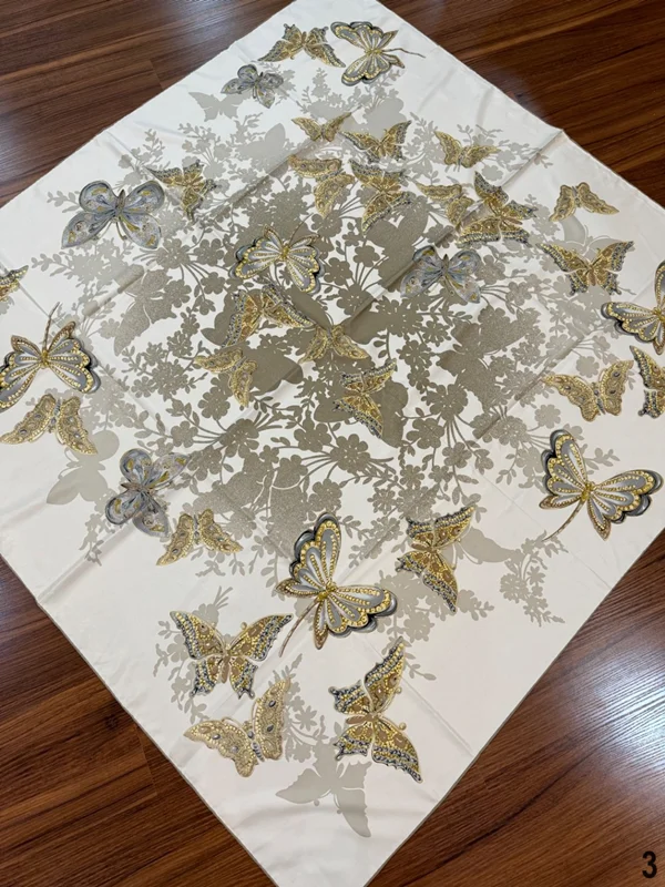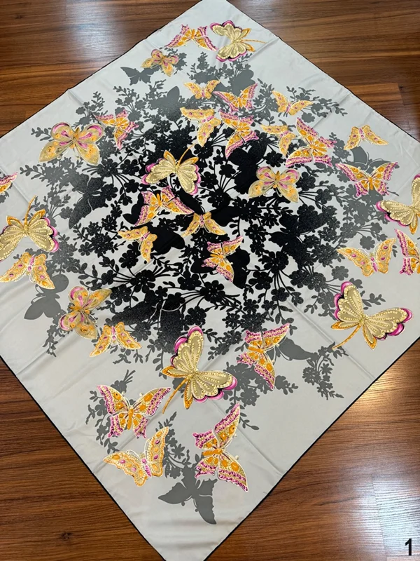 روسري ابريشم توييل كجراه به عرض١۳٥ دور دست دوز با كيفيت و ايستايي عالي
