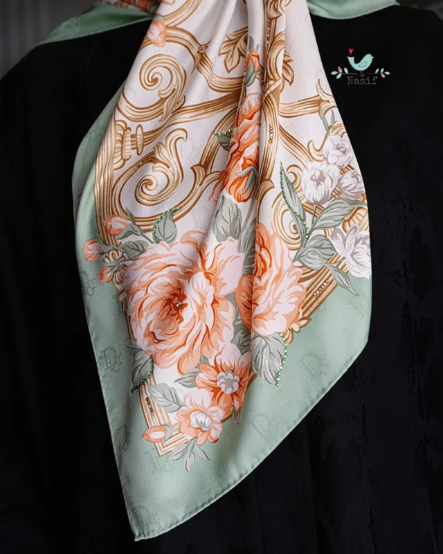 روسري ابريشم ژاكارد به عرض ١١٠ تزئين شده با سنگهاي درجه يك با كيفيت عالي