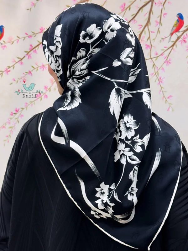 روسري ابريشم ژاكارد وارداتي به عرض١٢٠ دور دست دوز با ايستايي و كيفيتي عالي که اصلا ليز نيست