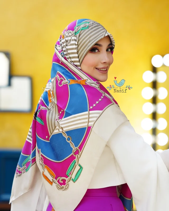 روسری ابریشم ژاکارد به عرض 140 ، دور دست دوز با کیفیتی عالی و ایستایی مناسب حتی با چادر ارسال رایگان پستی