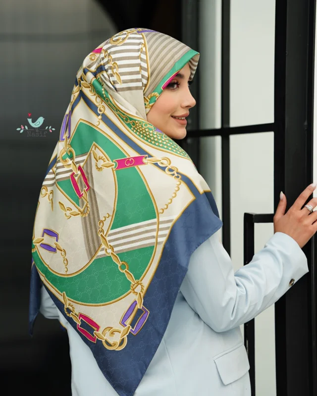 روسری ابریشم ژاکارد به عرض 140 ، دور دست دوز با کیفیتی عالی و ایستایی مناسب حتی با چادر ارسال رایگان پستی