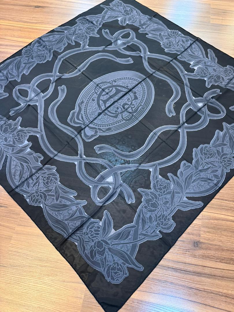 روسري كرپ ابريشم دووره قواره ١٤٠ دور دست دوز