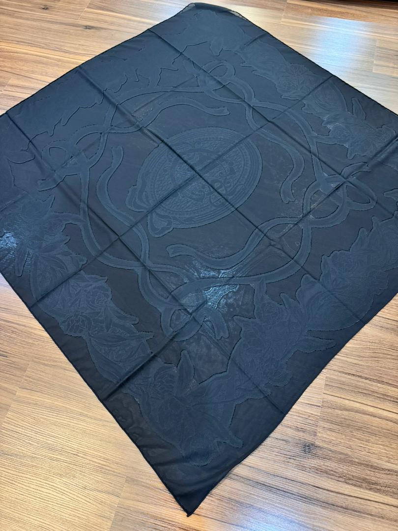 روسري كرپ ابريشم دووره قواره ١٤٠ دور دست دوز