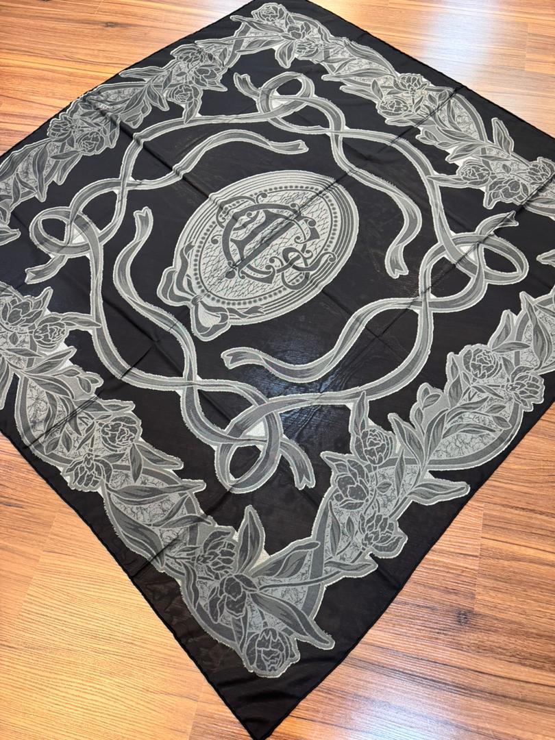 روسري كرپ ابريشم دووره قواره ١٤٠ دور دست دوز