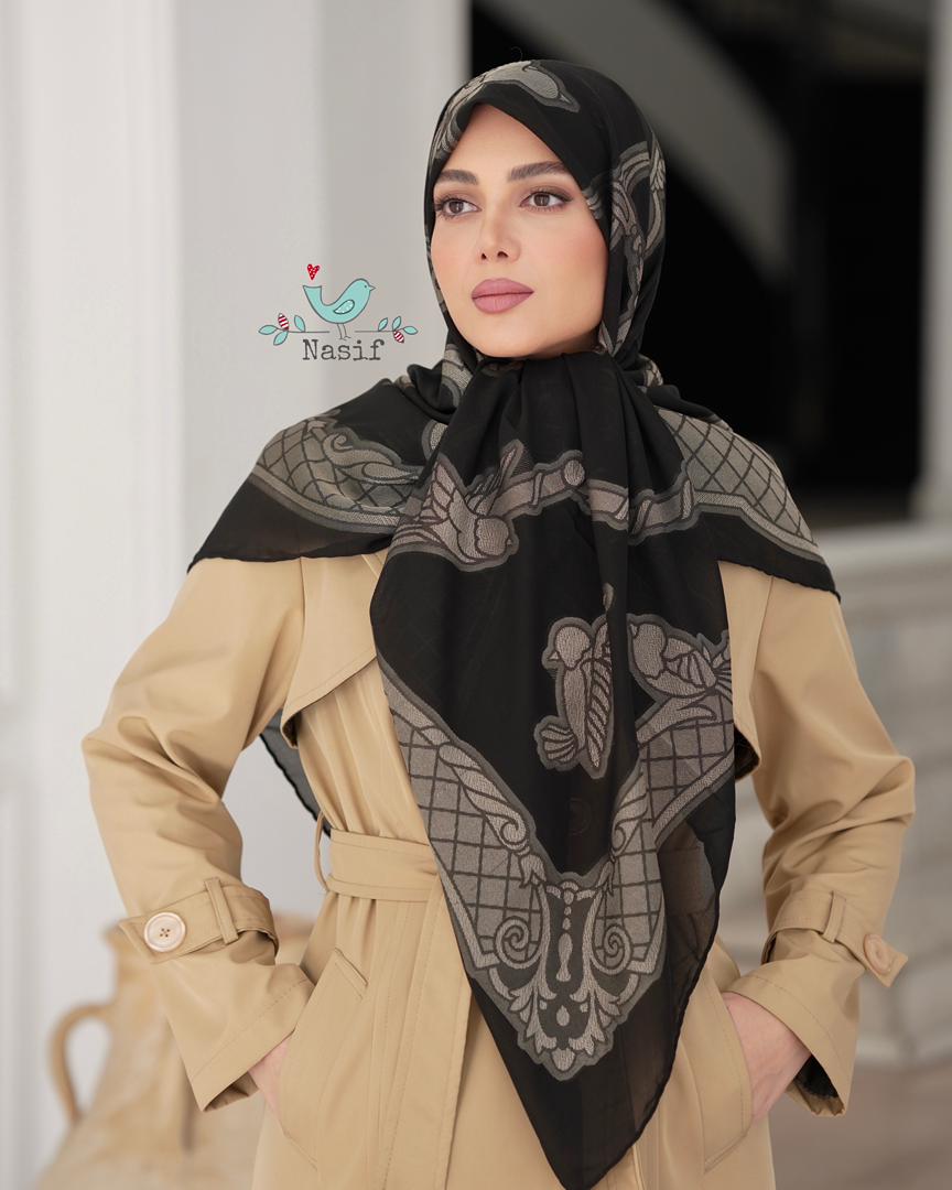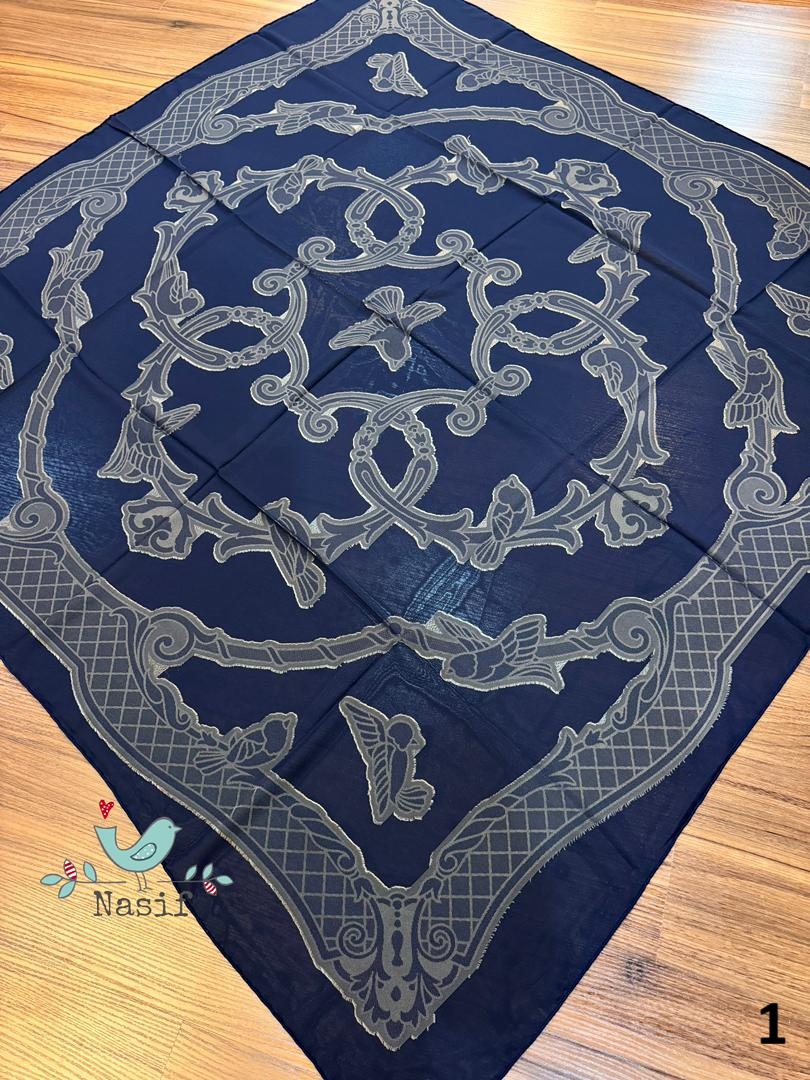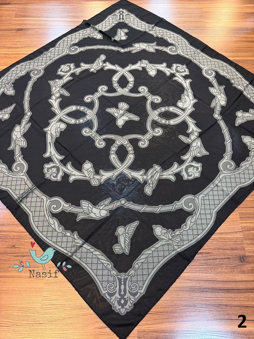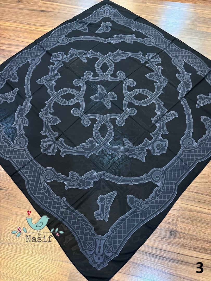 روسري كرپ ابريشم دووره قواره ١٤٠ دور دست دوز