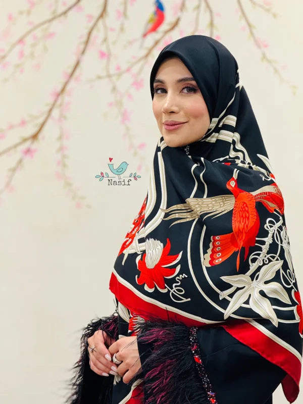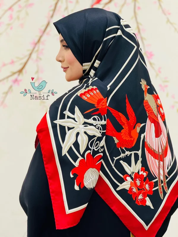 روسري ابريشم توييل كجراه وارداتي به عرض ١٣٠ تك رنگ با كيفيت عالي دور دست دوز با ايستايي عالي
