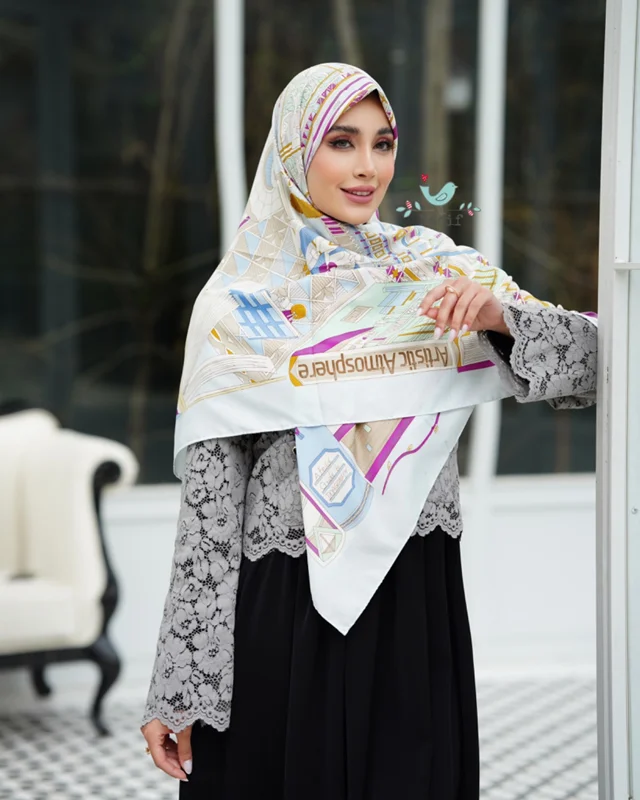 روسري ابريشم ژاكارد به عرض ١۳٥ دور دست دوز با كيفيت و ايستايي عالي ، ارسال رايگان پستي