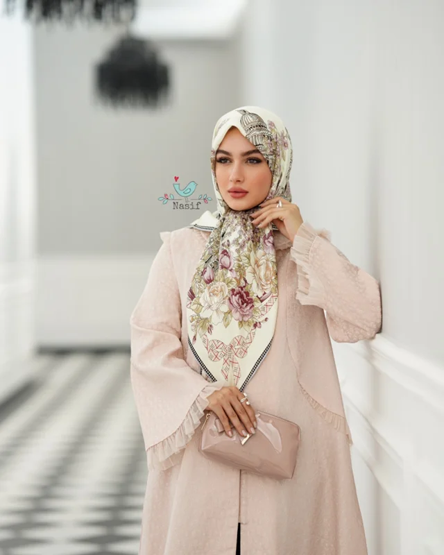 روسري ابريشم دبل فيس High quality هر طرف روسري يك رنگ دارد به عرض ١٢٠ دور دست دوز