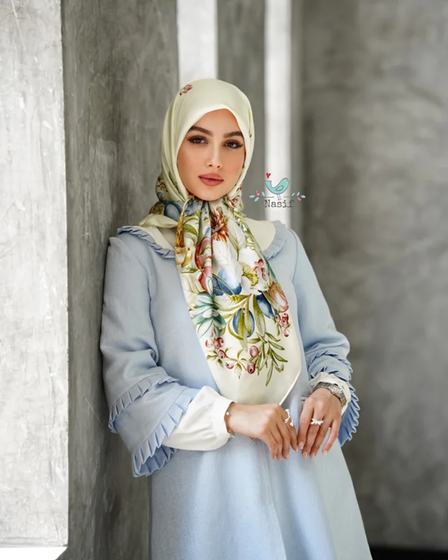 روسري ابريشم دبل فيس High quality هر طرف روسري يك رنگ دارد به عرض ١٢٠ دور دست دوز