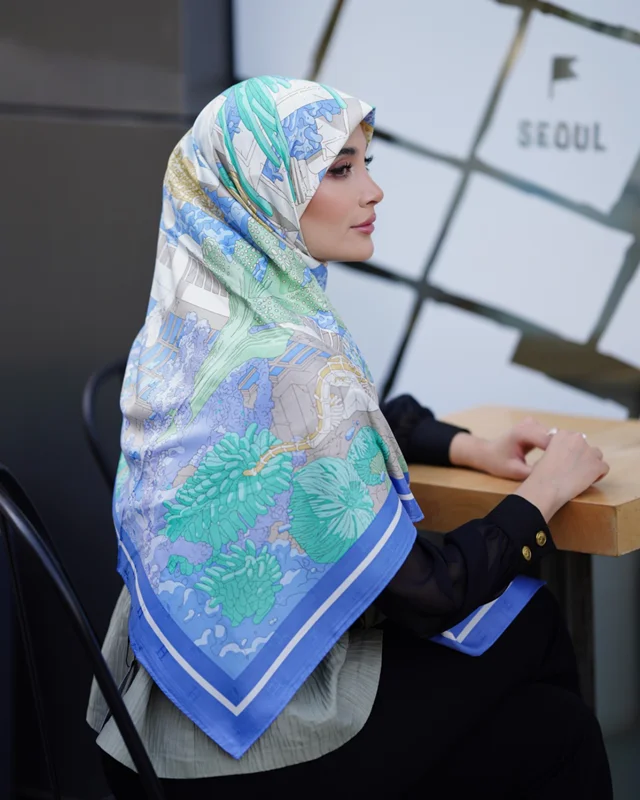 روسري ابريشم ژاكارد وارداتي به عرض ١٣٥ ، دور دست دوز و لطيف با ايستايي عالي ، مناسب براي استايل با چادر