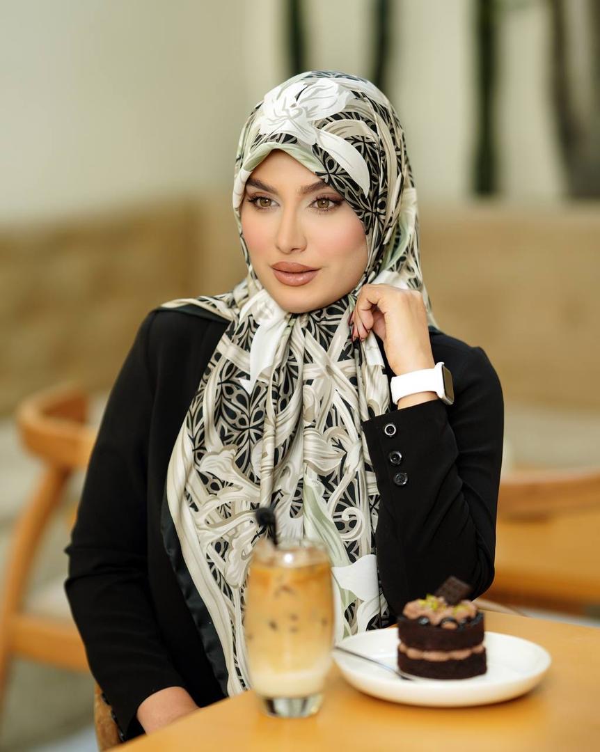 روسري ابريشم توييل كجراه با ايستايي عالي به عرض ١٣٠ دور دست دوز