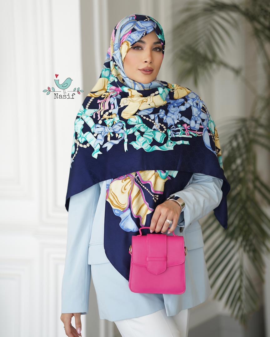 روسري ابريشم ژاكارد وارداتي با كيفيت عالي به عرض ١٣٠ دور دست دو زمناسب استايل با چادر ارسال رایگان پستی