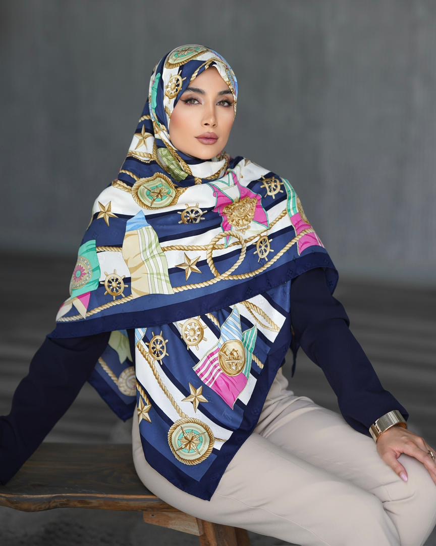 روسري ابريشم ژاكارد وارداتي با كيفيت عالي به عرض ١٣٠ دور دست دو زمناسب استايل با چادر ارسال رایگان پستی
