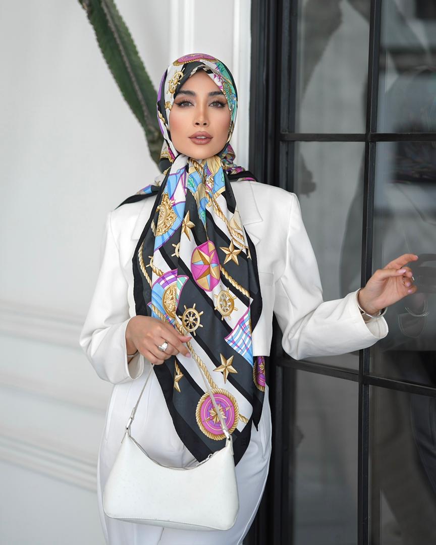 روسري ابريشم ژاكارد وارداتي با كيفيت عالي به عرض ١٣٠ دور دست دو زمناسب استايل با چادر ارسال رایگان پستی