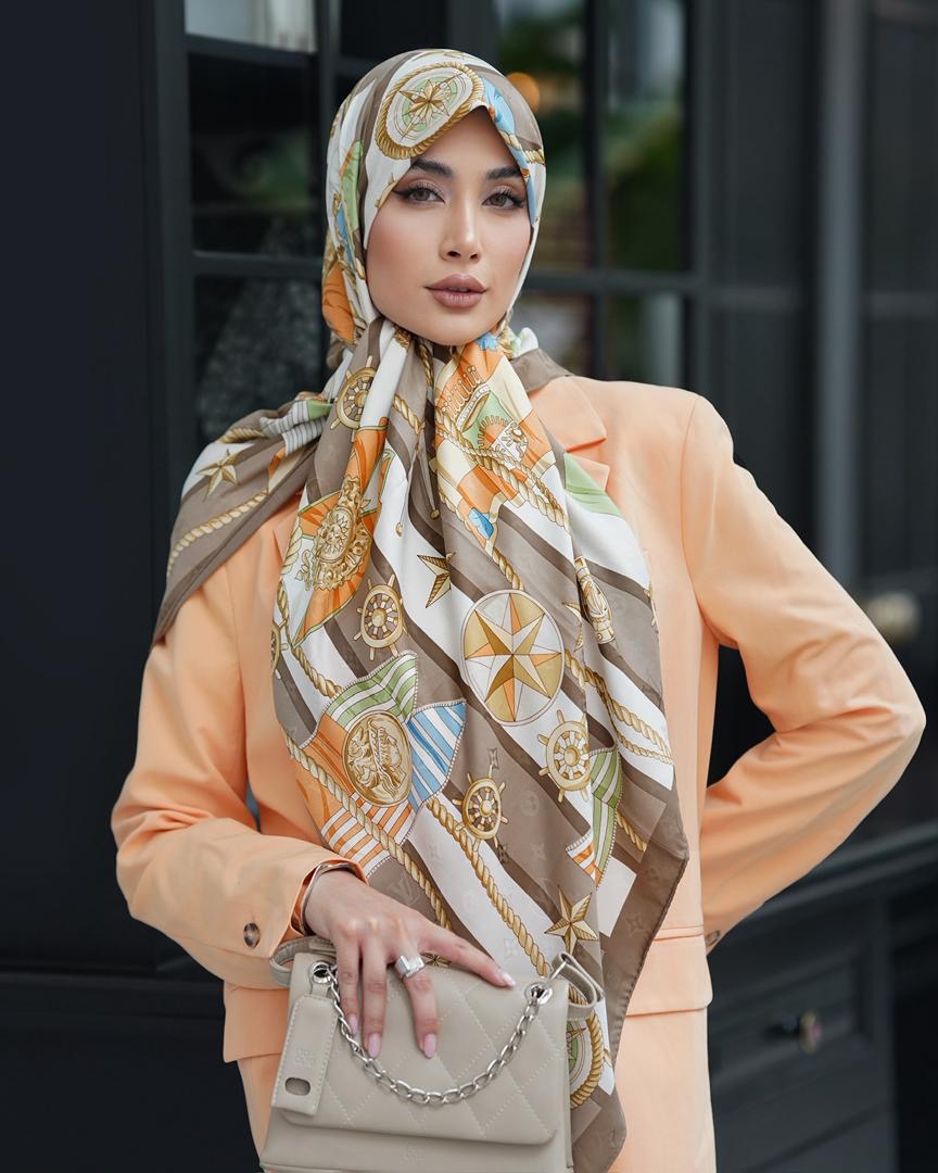 روسري ابريشم ژاكارد وارداتي با كيفيت عالي به عرض ١٣٠ دور دست دو زمناسب استايل با چادر ارسال رایگان پستی