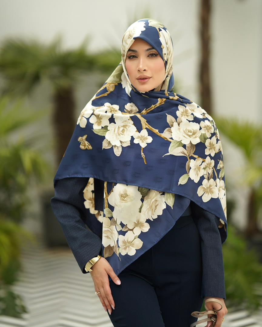 روسري ابريشم ژاكارد وارداتي با كيفيت عالي به عرض ١٣٠ دور دست دو زمناسب استايل با چادر ارسال رایگان پستی