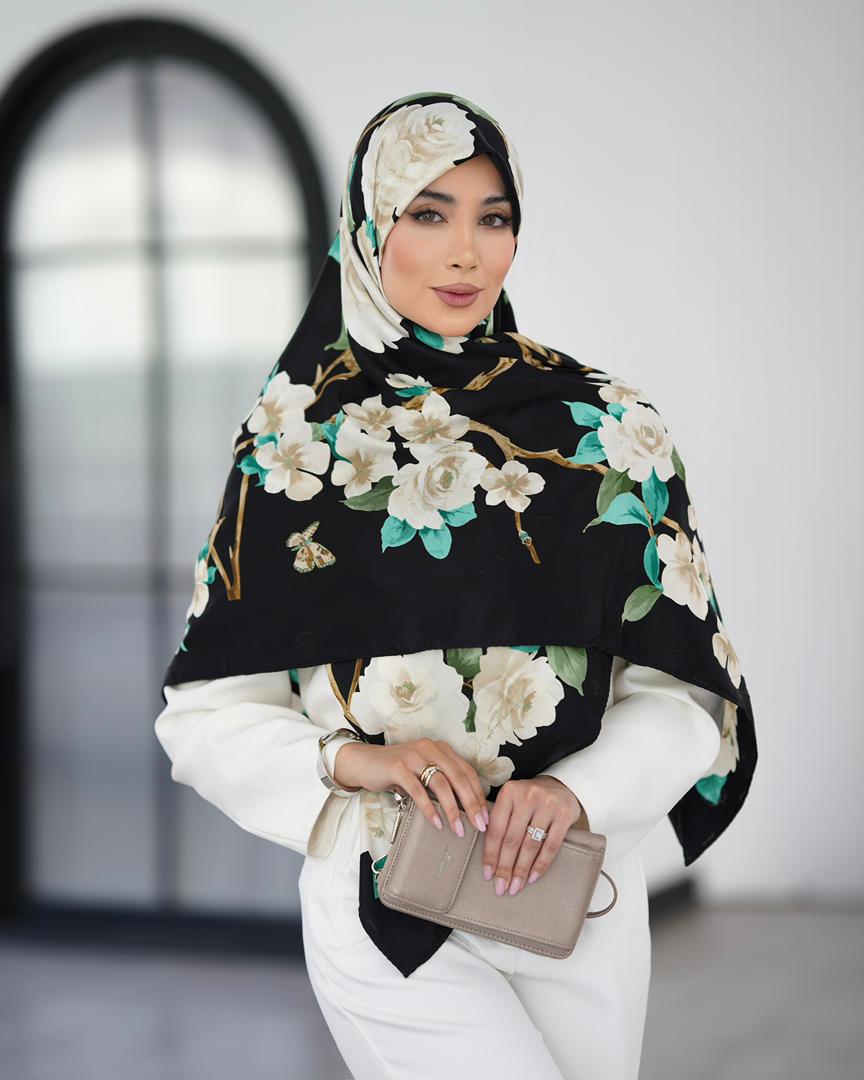 روسري ابريشم ژاكارد وارداتي با كيفيت عالي به عرض ١٣٠ دور دست دو زمناسب استايل با چادر ارسال رایگان پستی