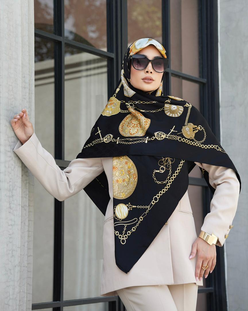 روسري ابريشم ژاكارد وارداتي با كيفيت عالي به عرض ١٣٠ دور دست دو زمناسب استايل با چادر ارسال رایگان پستی