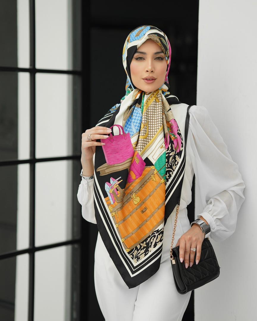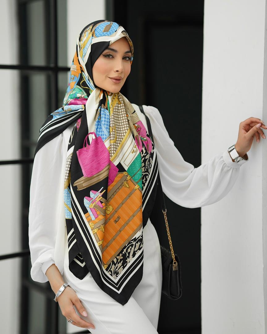 روسري ابريشم ژاكارد وارداتي با كيفيت عالي به عرض ١٣٠ دور دست دو زمناسب استايل با چادر ارسال رایگان پستی