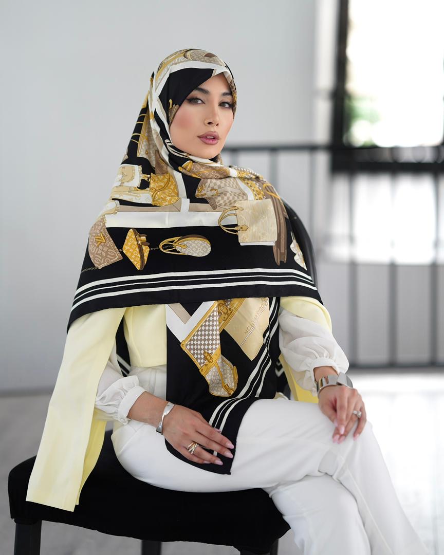 روسري ابريشم ژاكارد وارداتي با كيفيت عالي به عرض ١٣٠ دور دست دو زمناسب استايل با چادر ارسال رایگان پستی