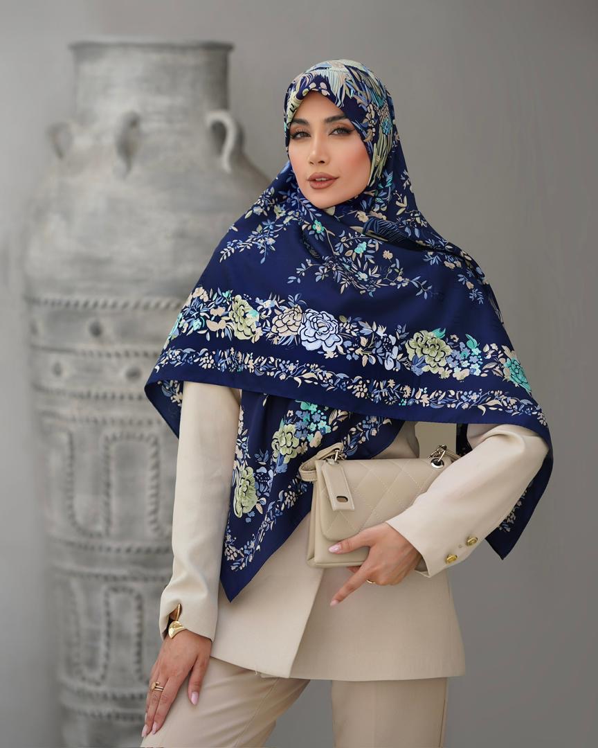 روسري ابريشم ژاكارد وارداتي با كيفيت عالي به عرض ١٣٠ دور دست دو زمناسب استايل با چادر ارسال رایگان پستی