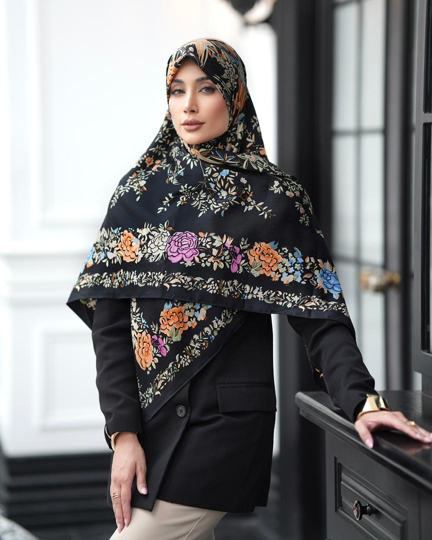 روسري ابريشم ژاكارد وارداتي با كيفيت عالي به عرض ١٣٠ دور دست دو زمناسب استايل با چادر ارسال رایگان پستی