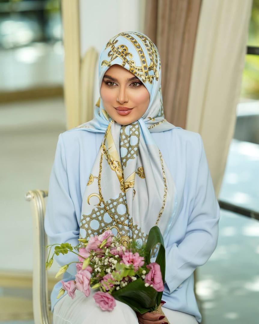 روسري ابريشم ژاكارد به عرض ١٣٠ دور دست دوز با ايستايي عالي حتي با چادر