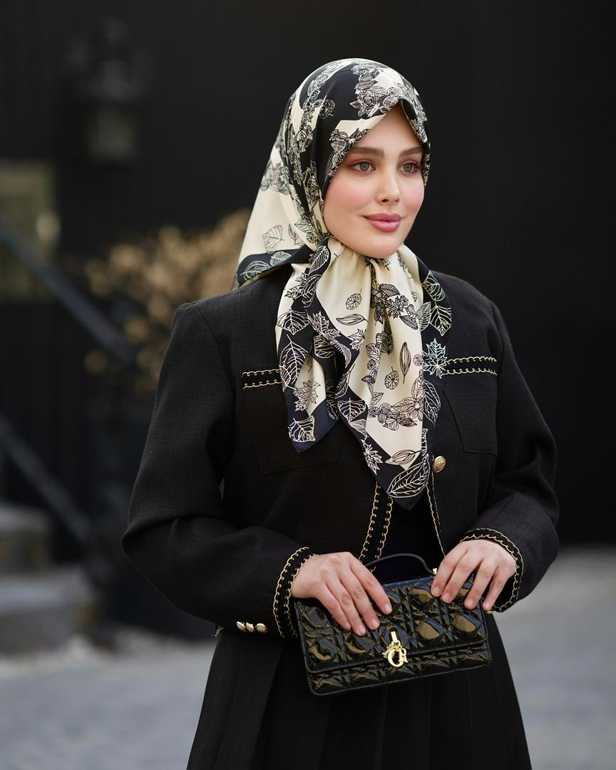 روسري توييل ابريشم كجراه به عرض ٩٠ دور دست دوز وارداتي