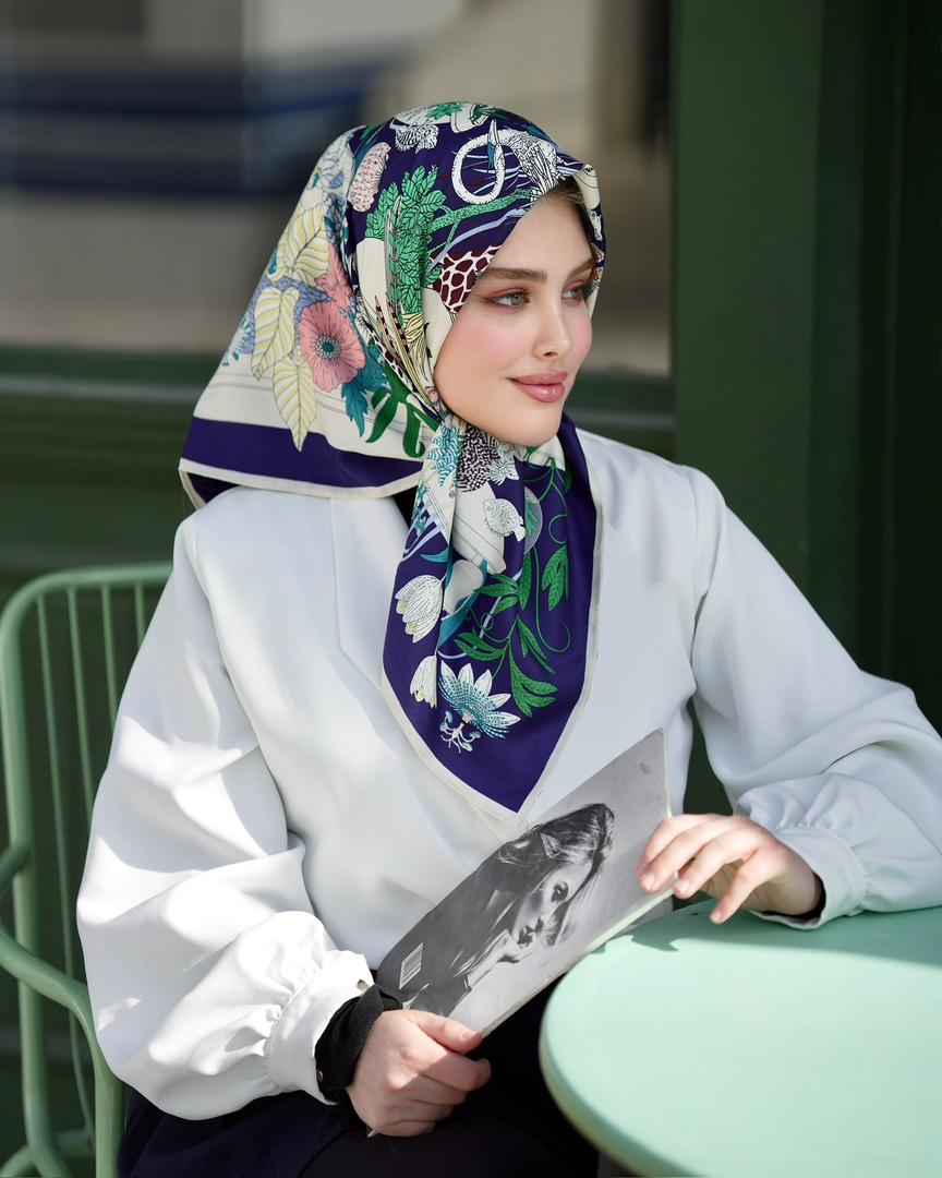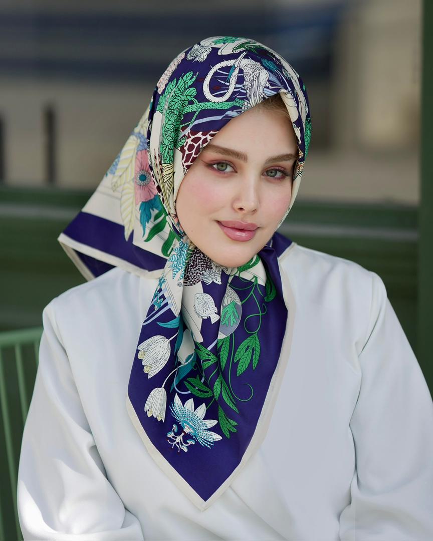 روسري توييل ابريشم كجراه به عرض ٩٠ دور دست دوز وارداتي