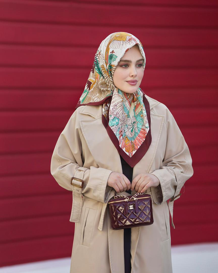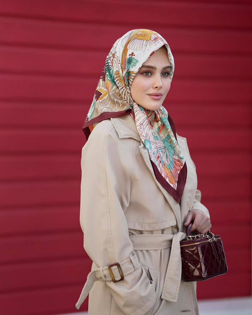 روسري توييل ابريشم كجراه به عرض ٩٠ دور دست دوز وارداتي