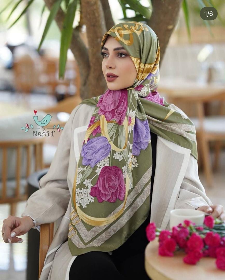 روسري ابريشم ژاكارد قواره ١٣٠ دور دست دوز وارداتي درجه يك با بهترين ايستايي