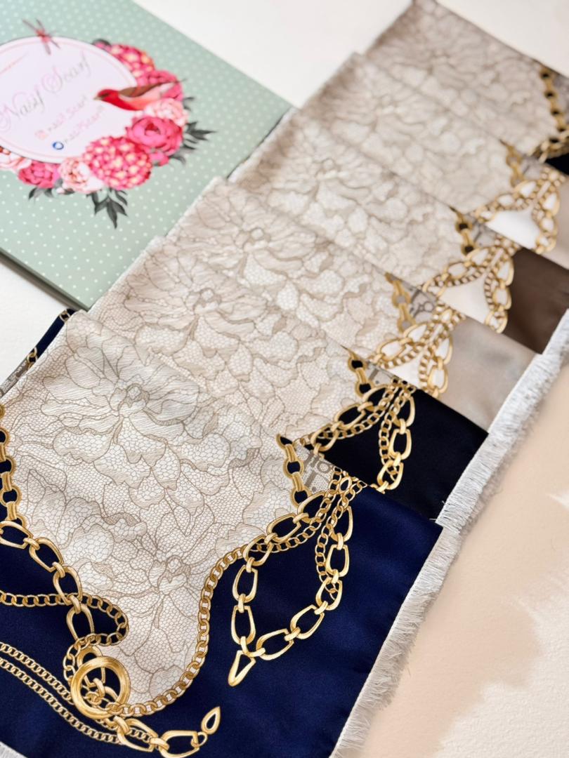 روسري ابريشم كجراه قواره ١١٠ ريشه سوزني كيفيت عالي