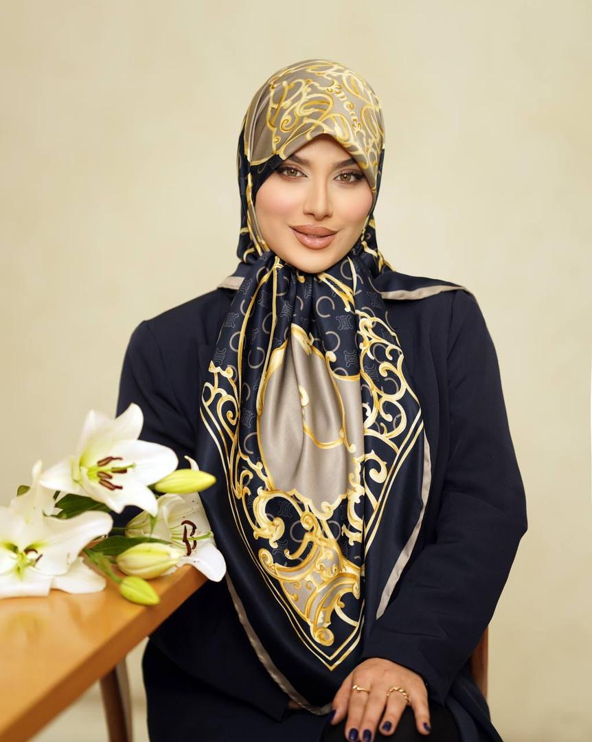 روسري مجلسي ابريشم توييل كجراه قواره ١٣٠ دور دست دوز