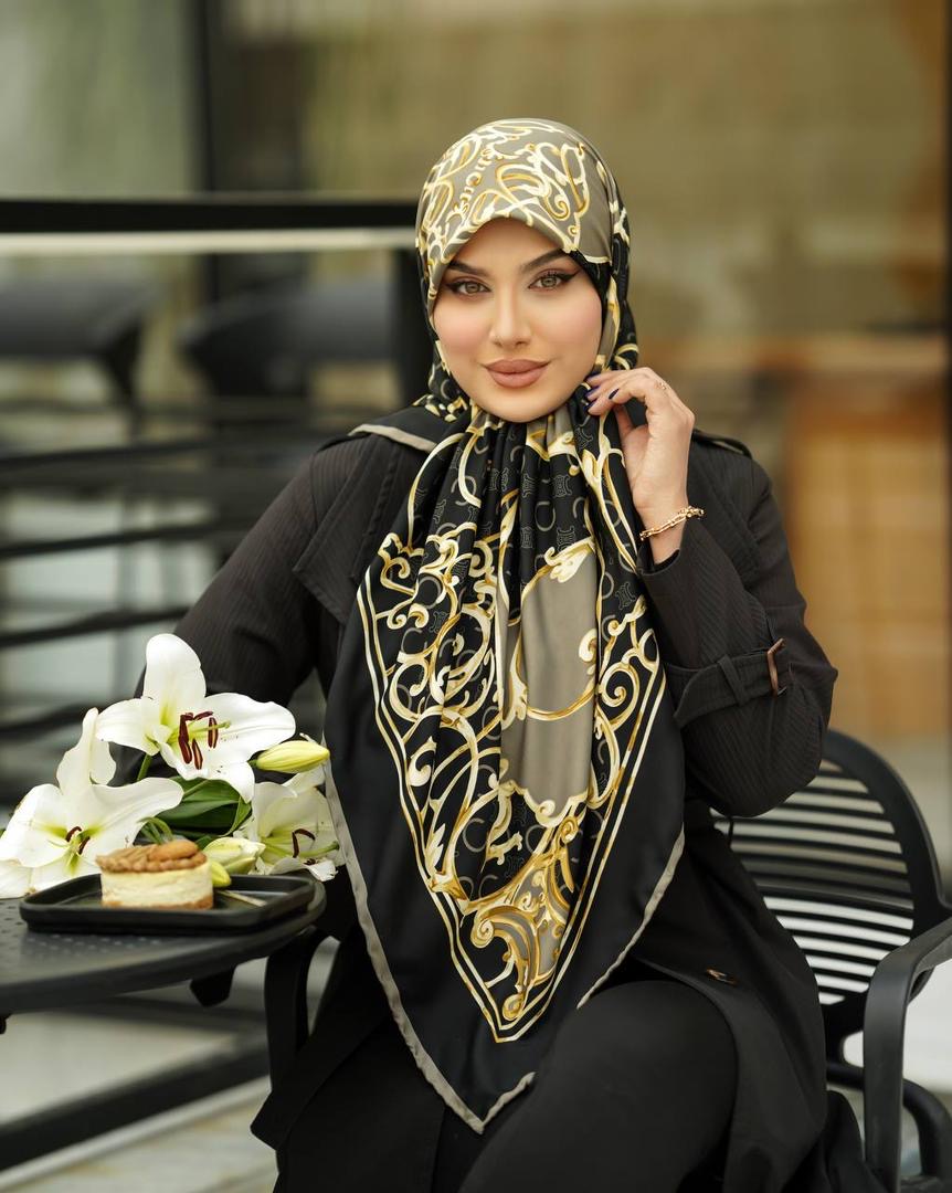 روسري مجلسي ابريشم توييل كجراه قواره ١٣٠ دور دست دوز
