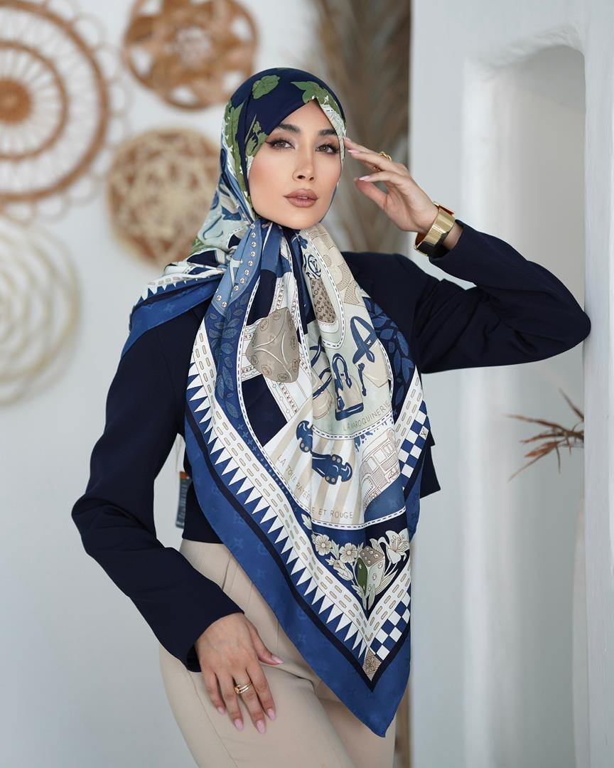 روسری مجلسي ابريشم ژاكارد وارداتي با كيفيت عالي دور دست دوز ، بهترين براي استايل مجلسي و استايل با چادر ، ارسال رايگان پستی