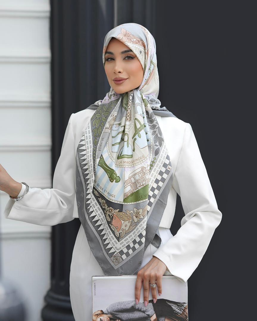 روسری مجلسي ابريشم ژاكارد وارداتي با كيفيت عالي دور دست دوز ، بهترين براي استايل مجلسي و استايل با چادر ، ارسال رايگان پستی