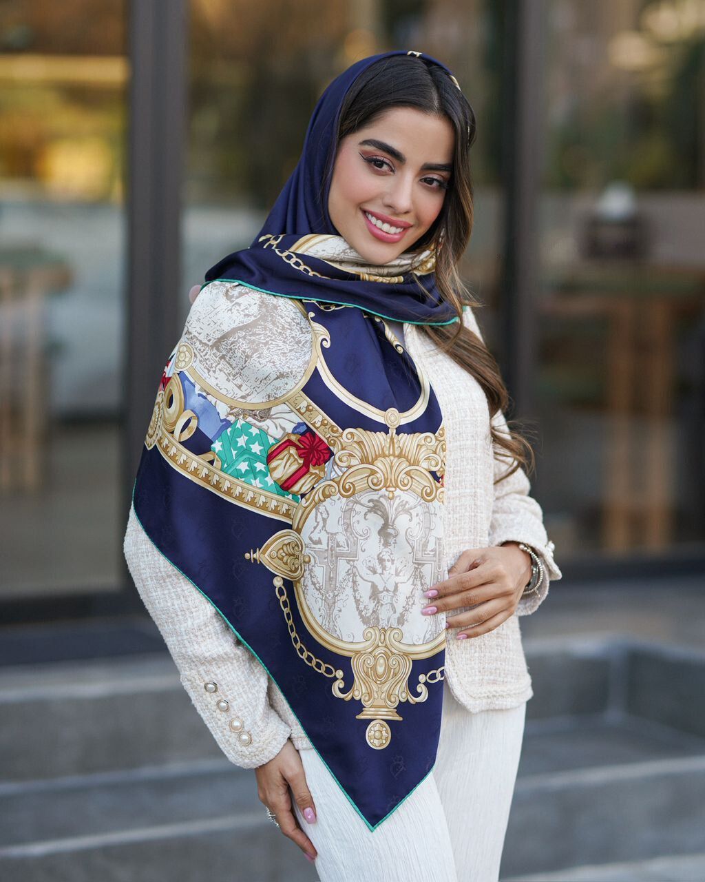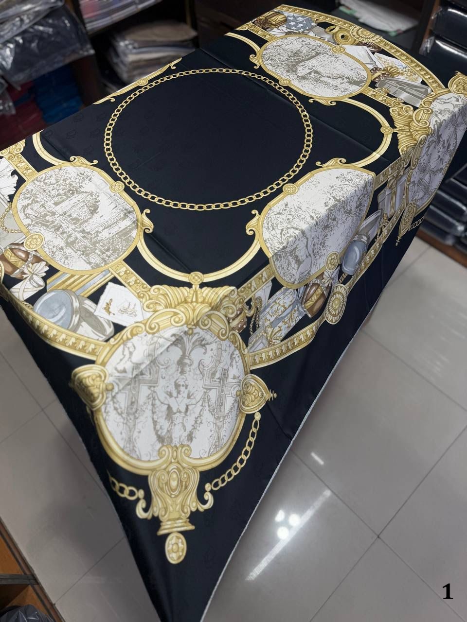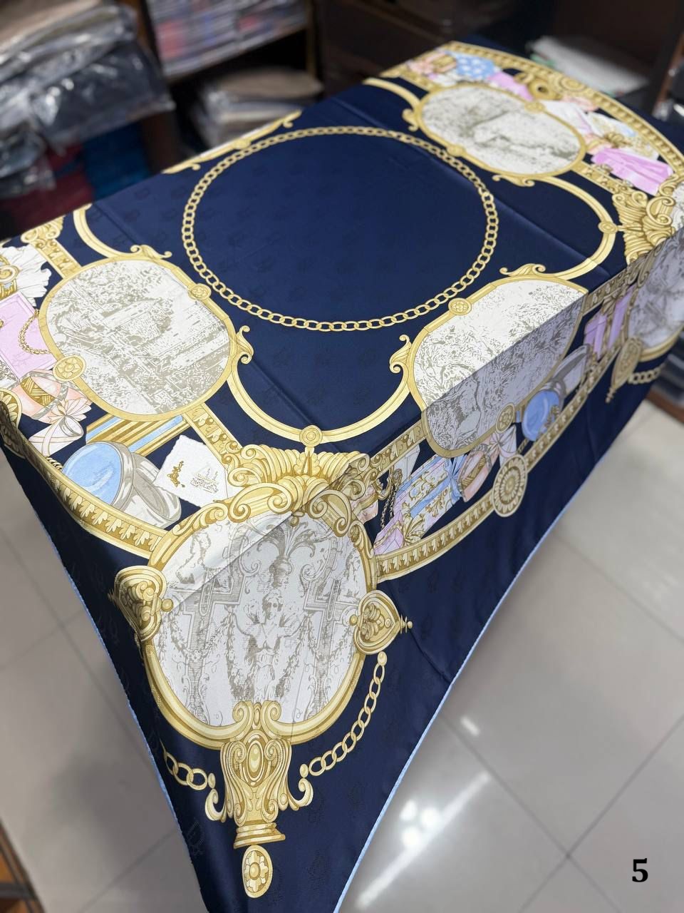 روسري مجلسي ابريشم ژاكارد وارداتي درجه يك به قواره ١١٠ دور دست دوز با ايستايي عالي ، ارسال رايگان پستی