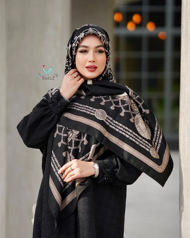 روسری نخ کشمیر وارداتی مناسب چهارفصل ، ایستایی عالی ، دور دست دوز به عرض ۱۳۰