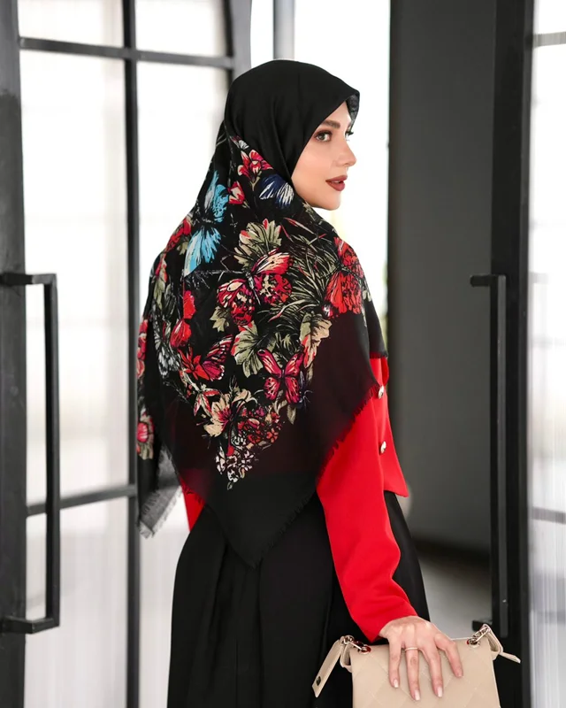 روسري نخ يونيك وارداتي به عرض ١٣٥ خنك و لطيف و كاملا مناسب بهار و تابستان با ايستايي عالي ، مناسب استايل با چادر، بدون چروكي
