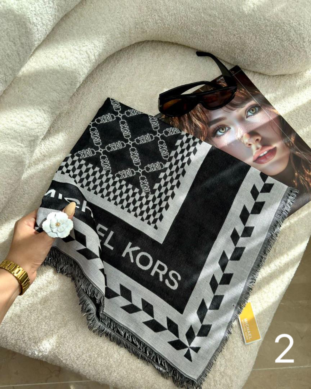 روسري نخ كشمير وارداتي با كيفيتي عالي مناسب پاييز و زمستان به عرض ١٤٠ ، دورو