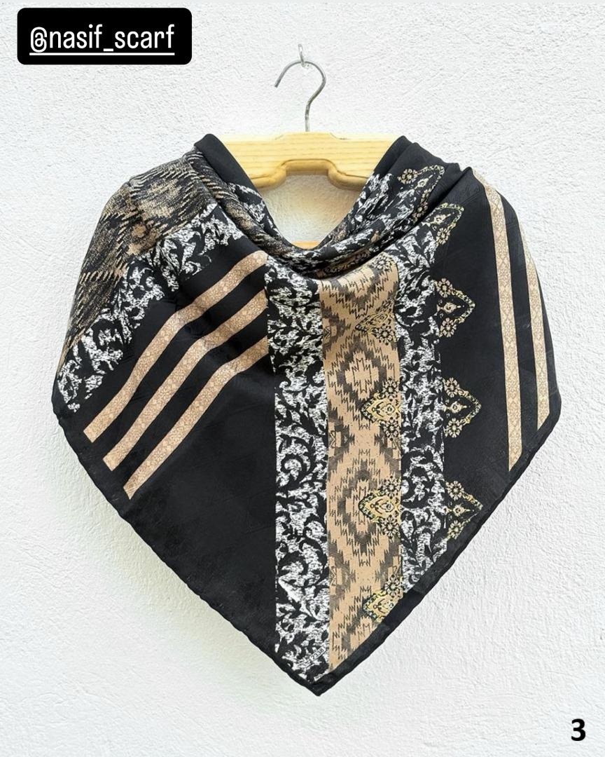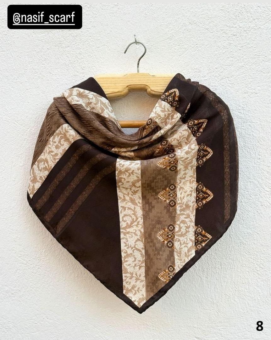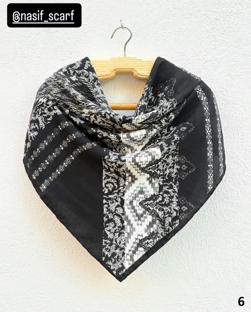 روسري نخ ابريشم مناسب ٤ فصل خوش جنس و لطيف با ايستايي عالي بهترين براي استايل با چادر که اصلا ليز نيست ، قواره ١١٠ دور دست دوز